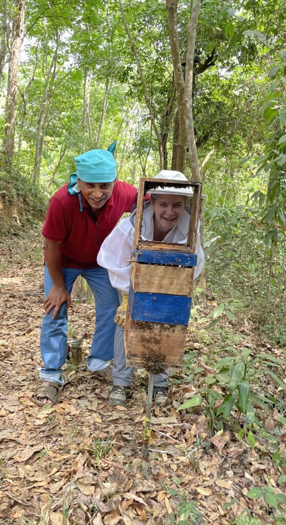 My “beeline” around the world was definitely wandering. I kicked off my travels in January 2023 by heading to Madagascar, where I volunteered with a conservation research program in the southeast for two months. From there, I headed to southwest India, where I spent a month living with a beekeeper and his family before then shadowing students taking a beekeeping course at a nearby forestry college for two weeks. After that, I hopped over to southeast Kenya where I spent two months interning with an organization focused on conserving elephants and fostering sustainable development using beekeeping. In July, I headed to Europe where I explored beekeeping in Austria and Slovenia for a couple of months before living with a beekeeper in central Romania for a few weeks . Next I interned at a field station in the Peruvian Amazon studying butterflies and got to work on my own project about wasp diversity. I finished off my year working with a family of beekeepers in northeast Costa Rica who rescue stingless bees from cut down trees.
